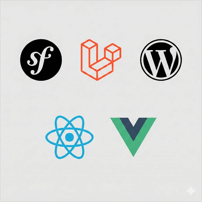 Symfony, Laravel, WordPress, React, NodeJS, VueJS.